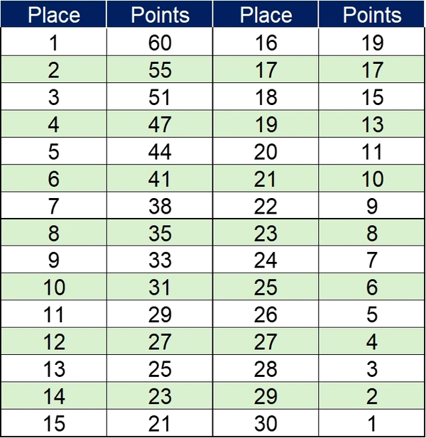 The point system for each individual race is displayed to the left.